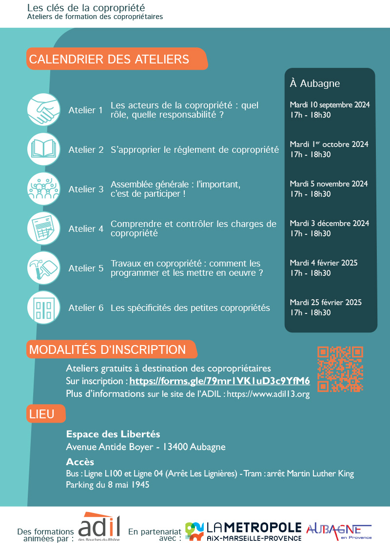 Inscriptions sur le site de l’ADIL : https://www.adil13.org/cles-copropriete/