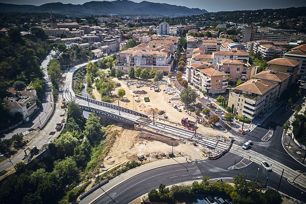 Après deux années de travaux, la ligne de Bus à haut niveau de service (BHNS) entre Aubagne et Gémenos a été mise en service en septembre dernier, offrant une desserte plus rapide, une fréquence plus importante et une régularité nettement améliorée par rapport à l’offre de bus antérieure. Axe structurant d’un projet plus large de requalification urbaine, cette ligne BHNS s’est accompagnée d’une refonte des espaces publics depuis le pôle d’échanges de la gare jusqu’à la zone Les Paluds.