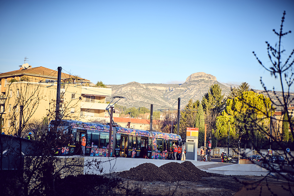 Une première phase dite « essai d’ouverture de ligne » a été menée les 18 et 19 décembre derniers sur le tronçon Aubagne Napollon. Etape clé, il s’agit du tout premier test dynamique au cours duquel une rame a parcouru la ligne à vitesse réduite afin de vérifier les passages en voie, les quais, les ouvrages, ainsi que le bon contact du pantographe avec la ligne aérienne.