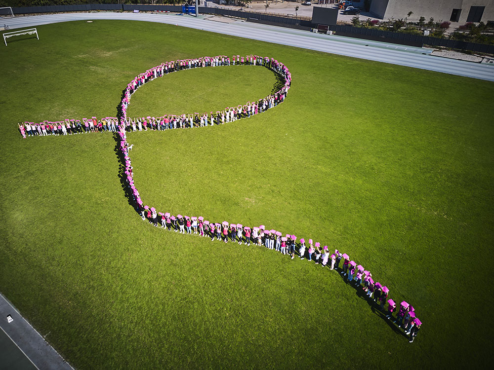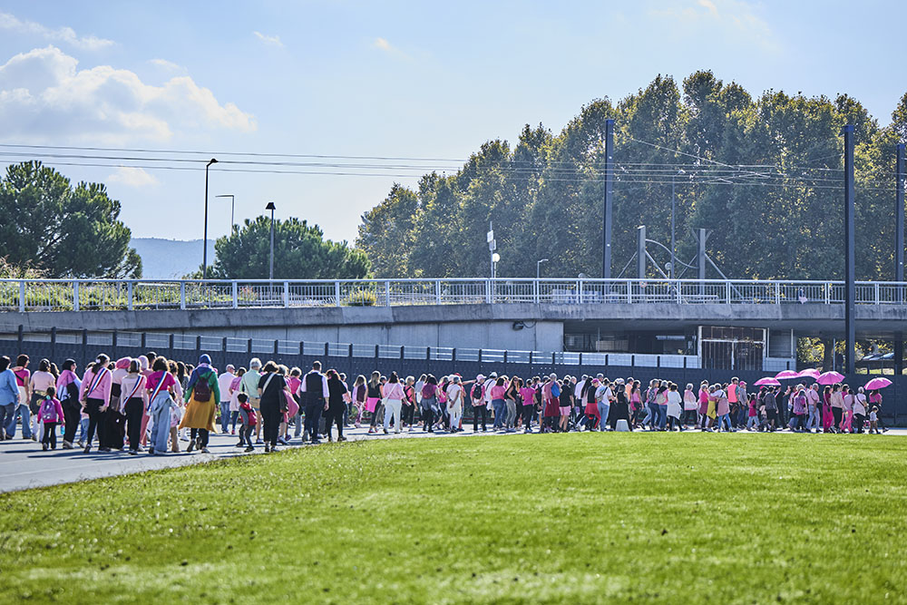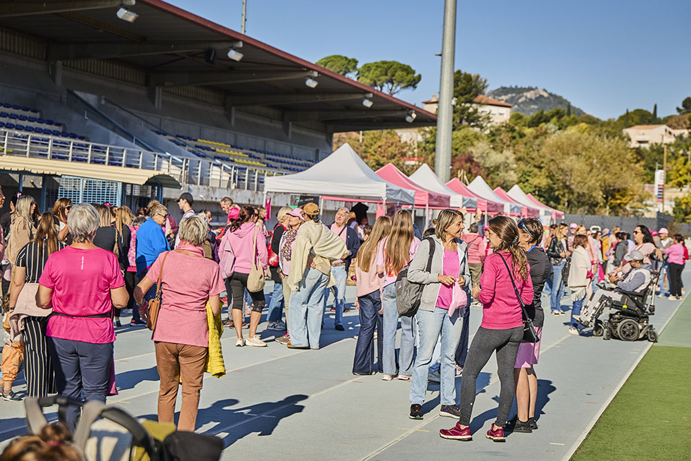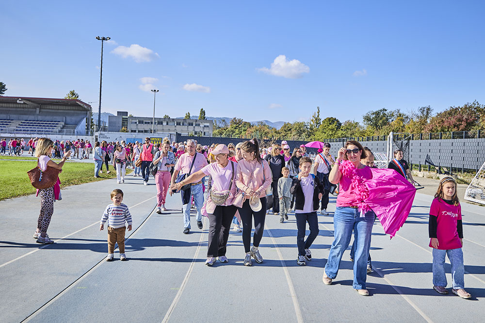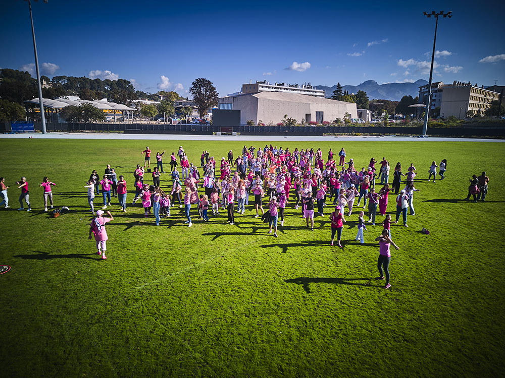 La Ville d’Aubagne a organisé, samedi 18 octobre dernier, une journée consacrée à la prévention et la sensibilisation contre le cancer du sein. Au programme : danse, marche, animations, nœud humain géant d’Octobre Rose vu du ciel sur la pelouse du stade de Lattre, ateliers d’auto-palpation (de l’association AILA), démonstration et initiation au Foot en marchant et autres activités pour rappeler combien la santé des femmes est une priorité, d'où l’importance du dépistage susceptible de détecter la maladie à un stade précoce et d’augmenter considérablement les chances de guérison.