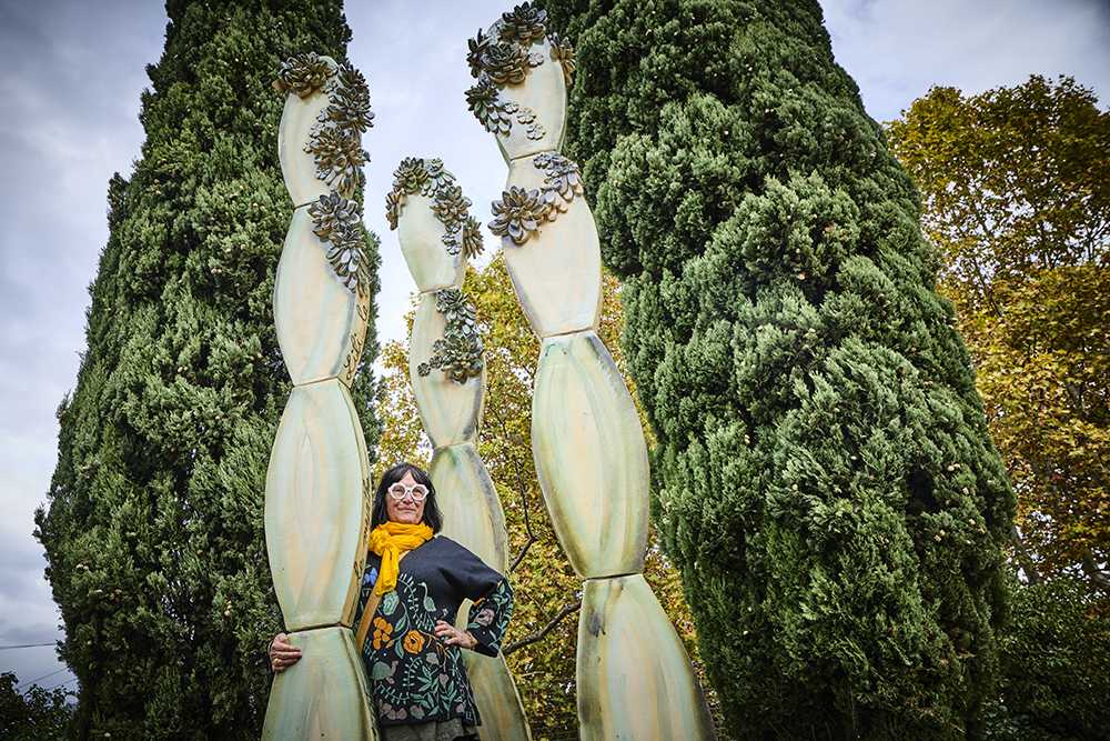 Un véritable ensemble totémique, réalisé en céramique dont les nuances pastelles évoquent les plantes aromatiques dans la garrigue.