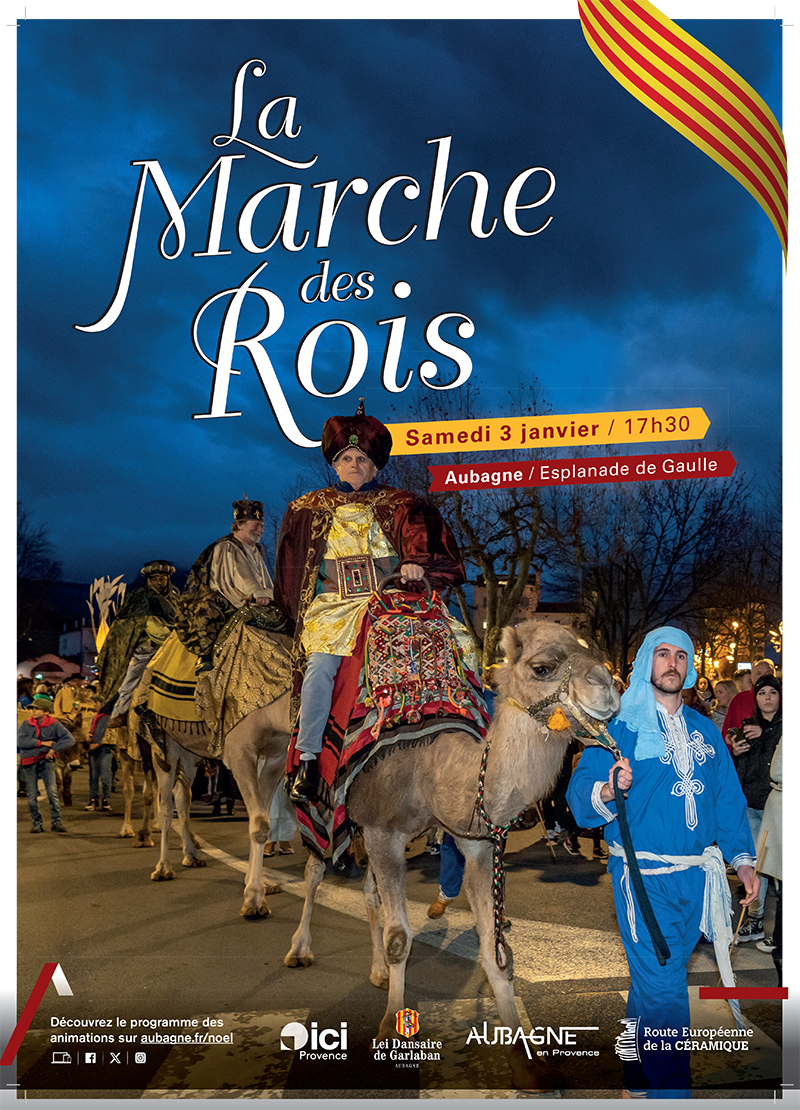 Guidés par l’étoile du berger, Gaspard, Melchior et Balthazar chemineront à dos de dromadaires accompagnés de leurs pages et suivis de leurs ânes.
