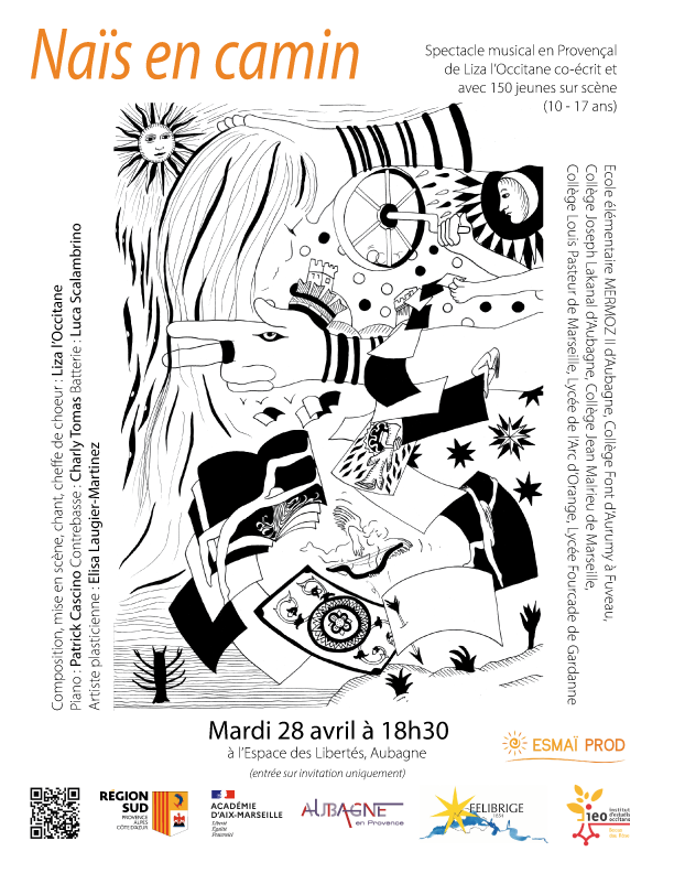 Réalisé entièrement entre janvier et mars 2026 avec la participation des élèves et enseignants d’occitan-provençal des établissements suivants : de l’école élémentaire MERMOZ II d’Aubagne, du collège Font d’Aurumy de Fuveau, du collège Joseph Lakanal d’Aubagne, du collège Jean Malrieu de Marseille, du collège Louis Pasteur de Marseille, du lycée de l’Arc d’Orange.