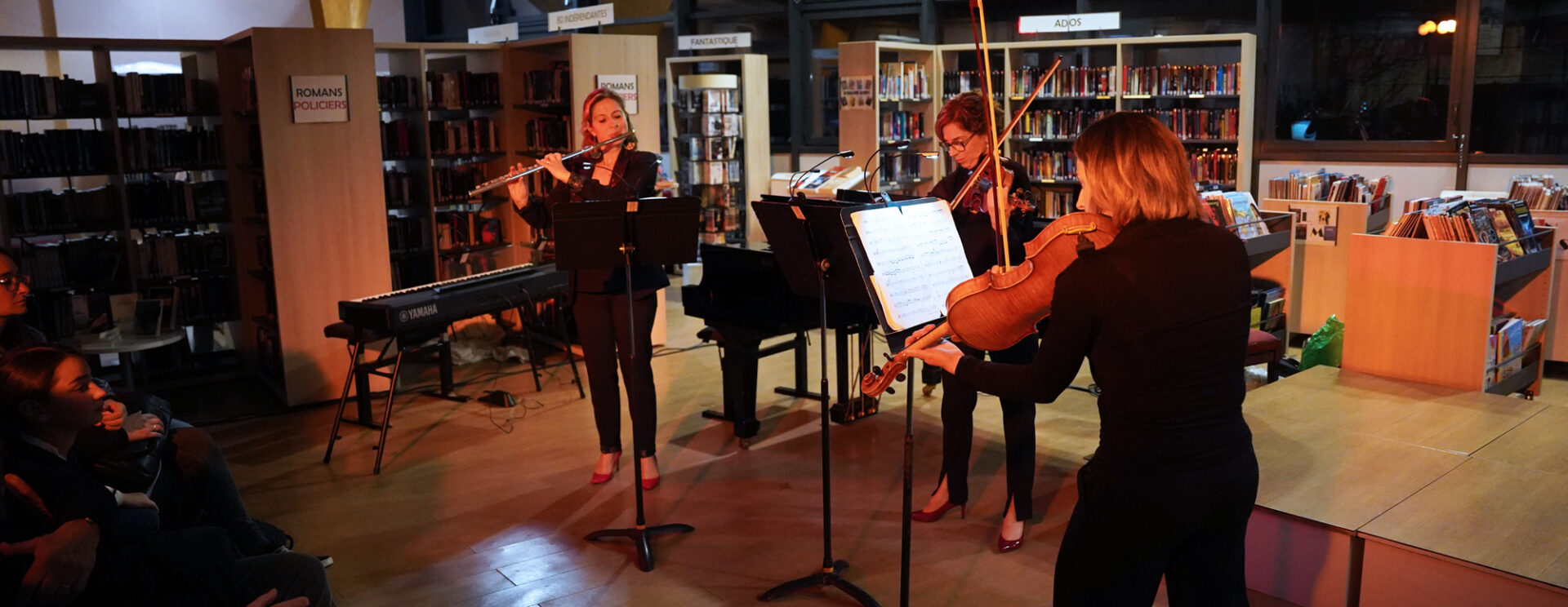 • Conférence sur l’écriture musicale animée par Julia Smadja (pianiste accompagnatrice et compositrice) accompagnée d’un quatuor à cordes