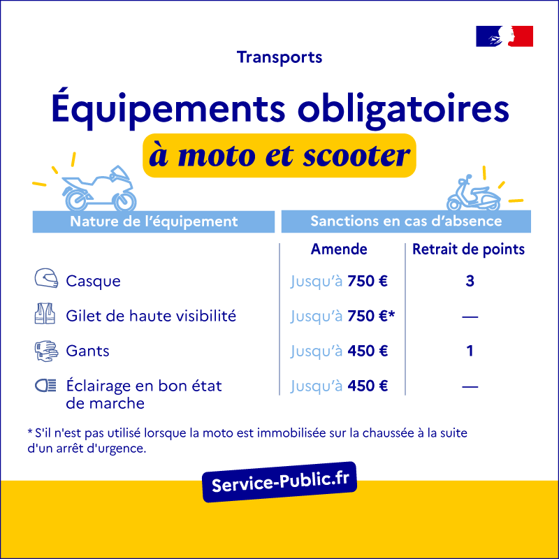 Source : Ministère chargé de l’intérieur - Équipement et entretien d’une moto